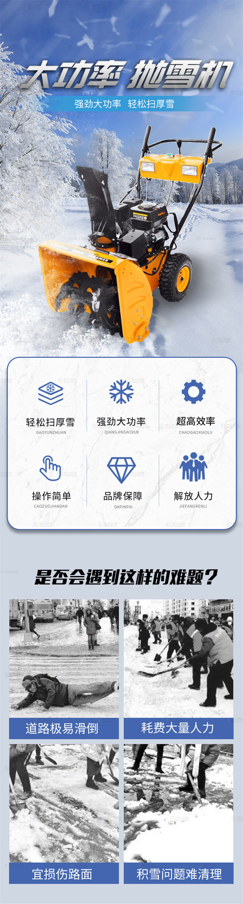 XG-56小型手扶自走清雪機掃雪機(黃色)