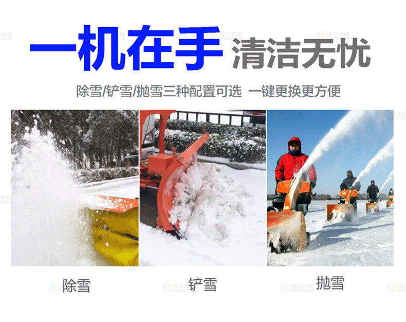 小型掃雪車由中型卡車或重型卡車、四缸汽車發動機、吸雪管、