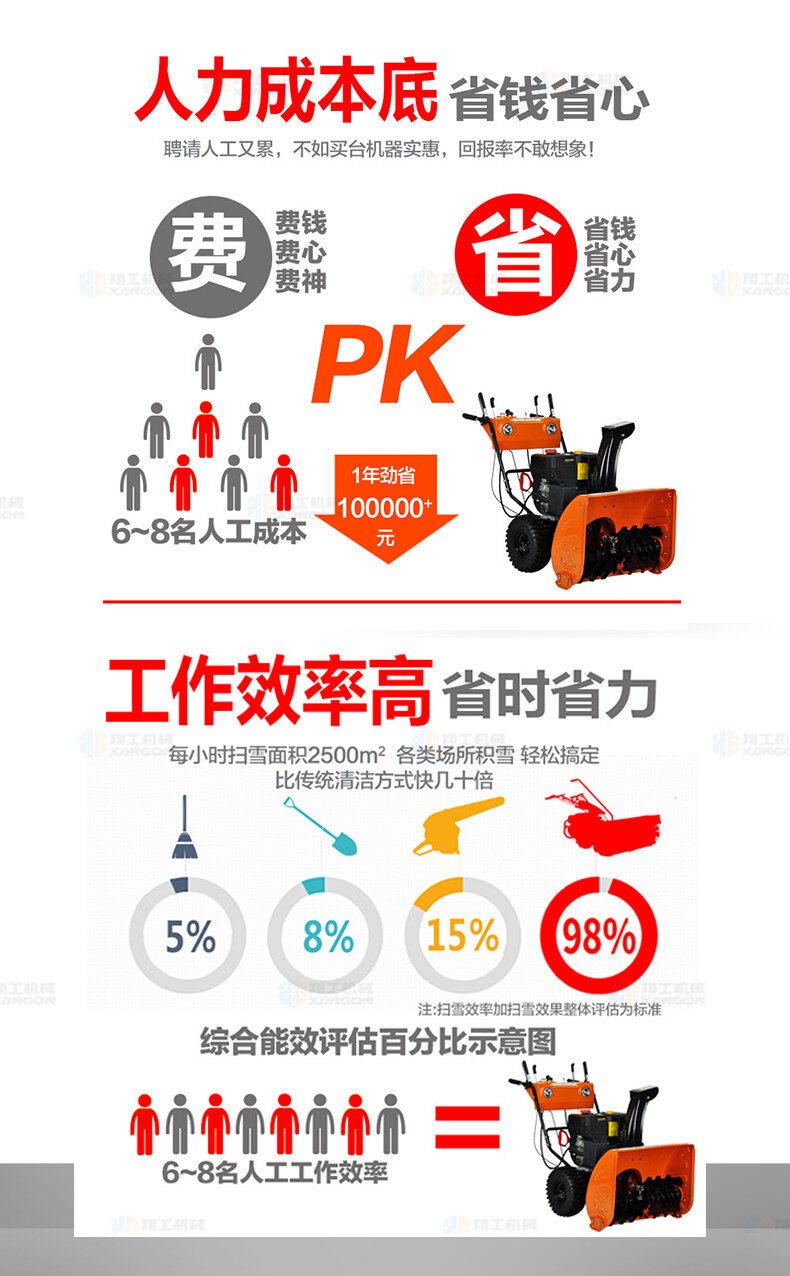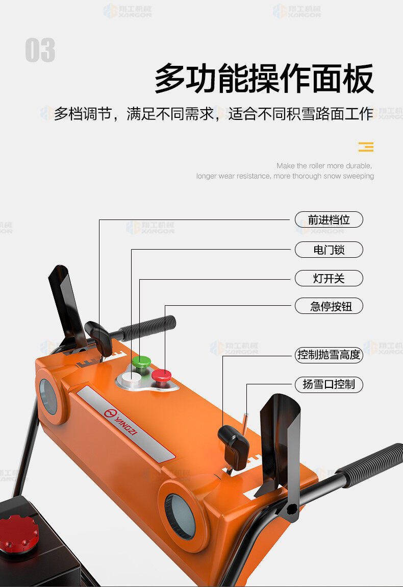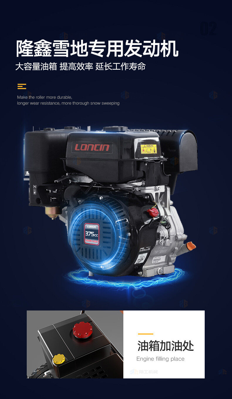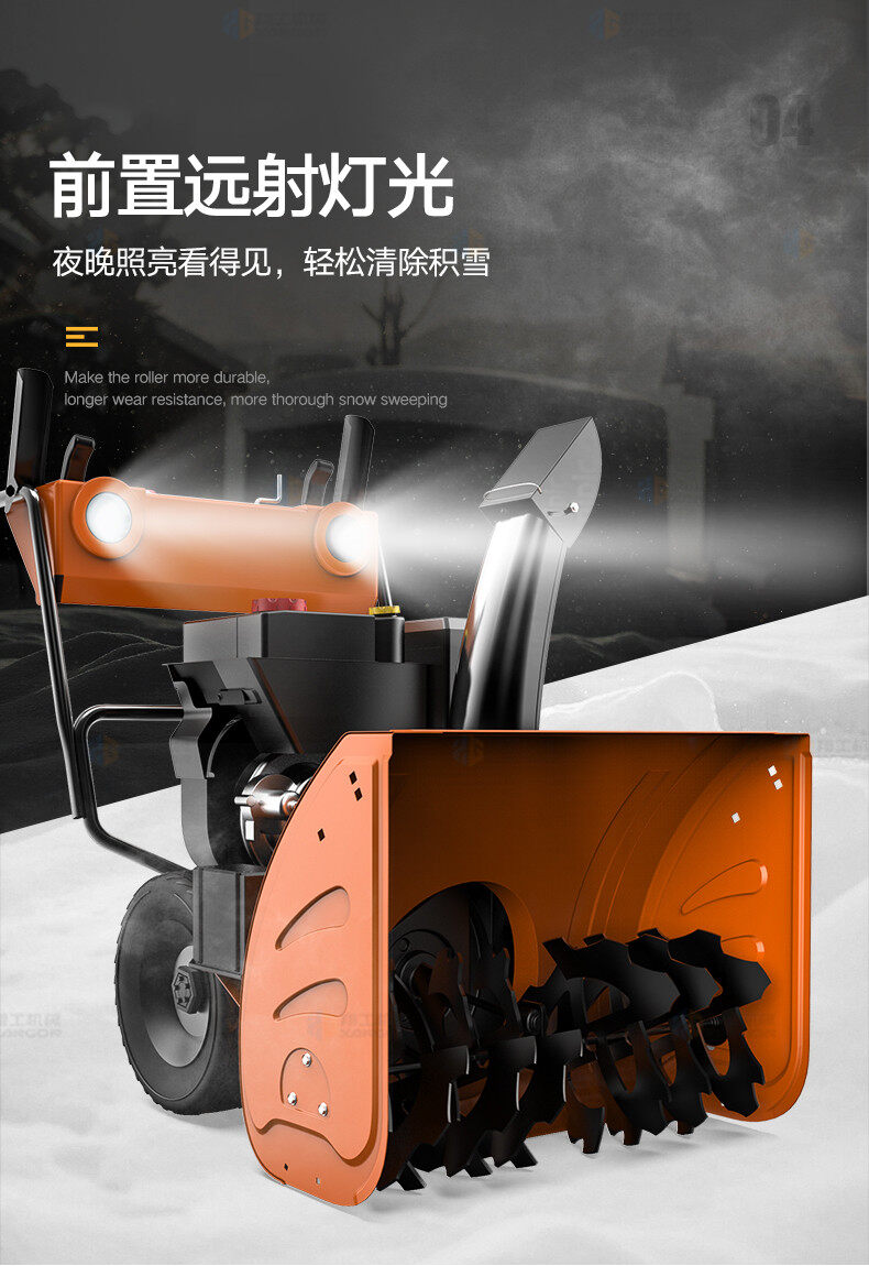 小型掃雪車由中型卡車或重型卡車、四缸汽車發動機、吸雪管、鼓風機、