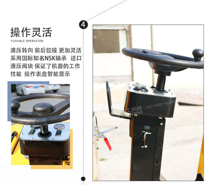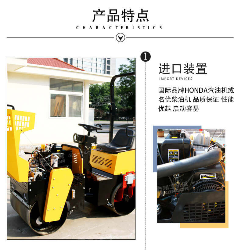 ·發動機電啟動,機器采用液壓振動,操作更加輕松方便;