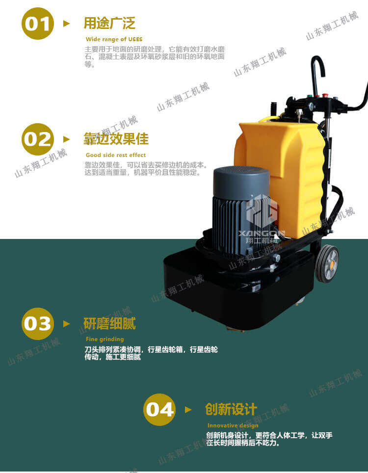 地坪研磨機主要用于地面的研磨處理,它能很好的打磨水磨石、混凝土表層及環氧砂漿層和舊的環氧地面等。具有輕便、靈活,工作效率高等特點。