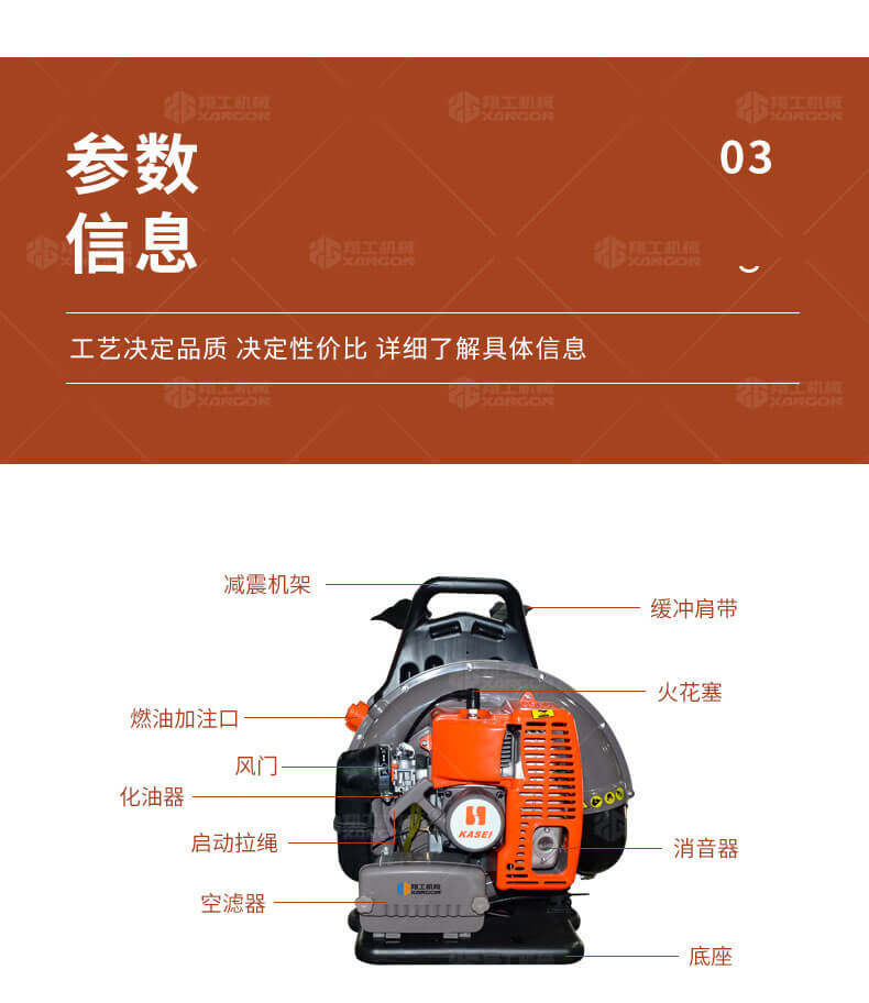 本機適用于修公路吹灰塵和吹雪,吹雪厚度達到15公分以上,鐵路上吹沙子,萊大柵溥膜上和露天的變壓器上吹雪(露天變壓器上吹雪時,需再配2.8米的伸縮噴風管)。公園內吹落葉,院子內吹雪及森林防火等.