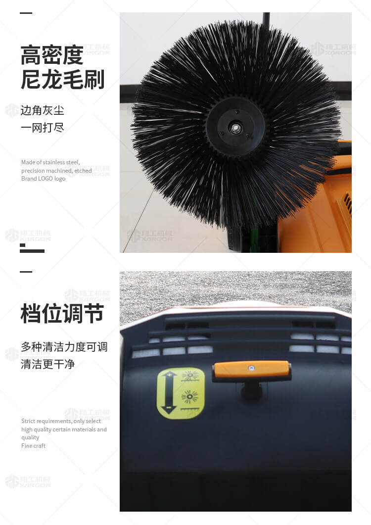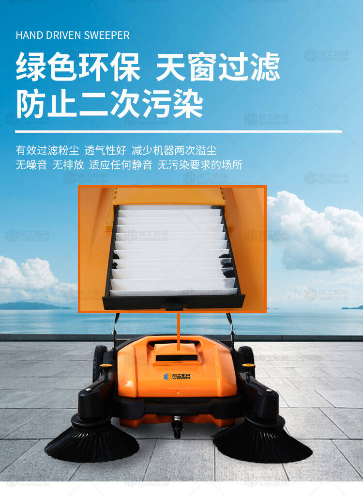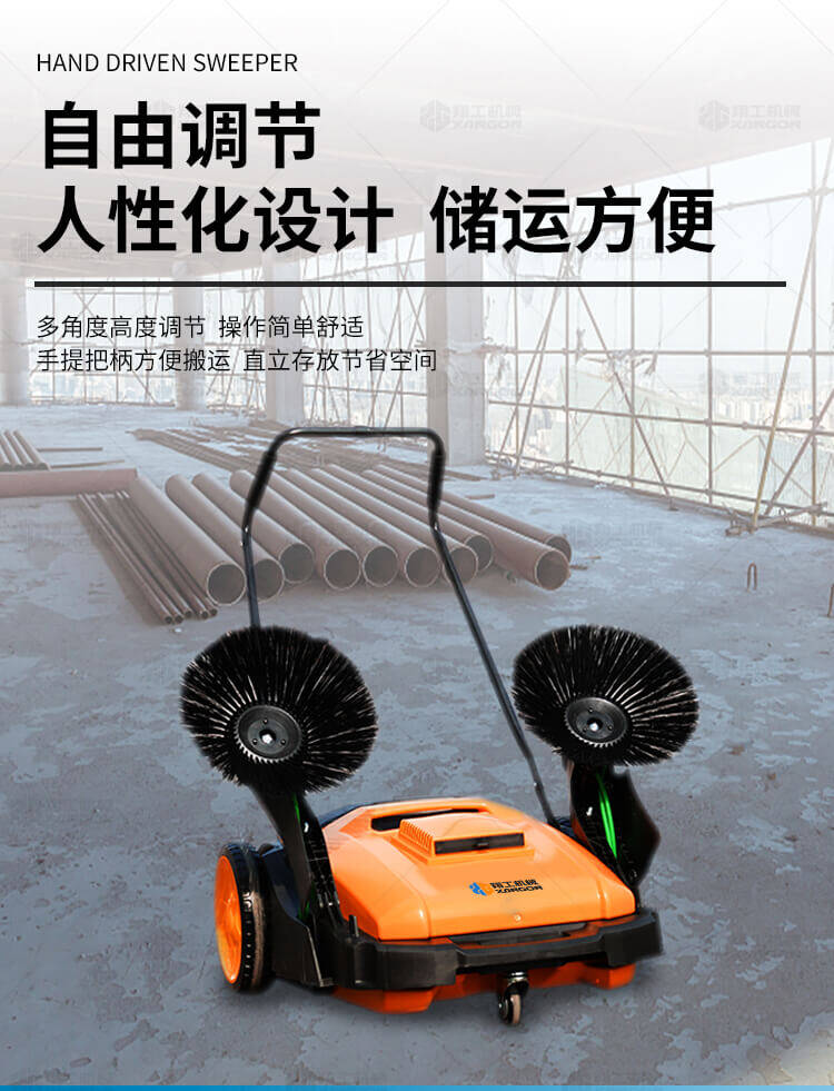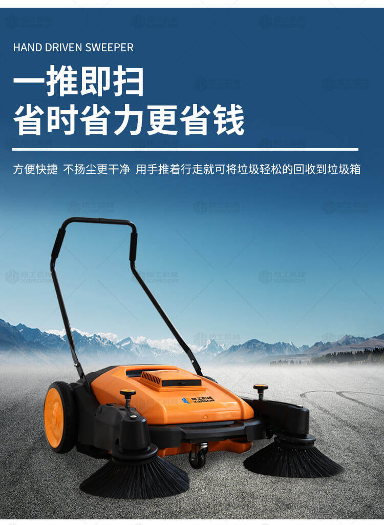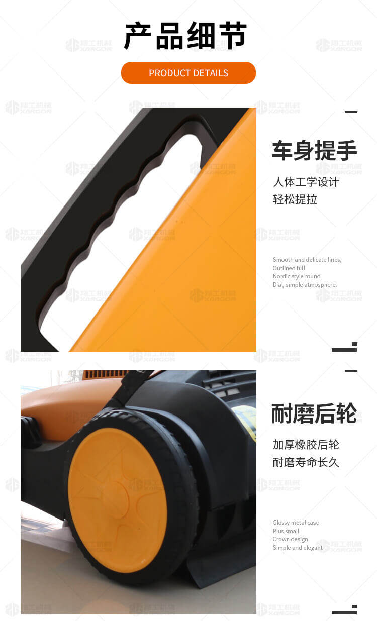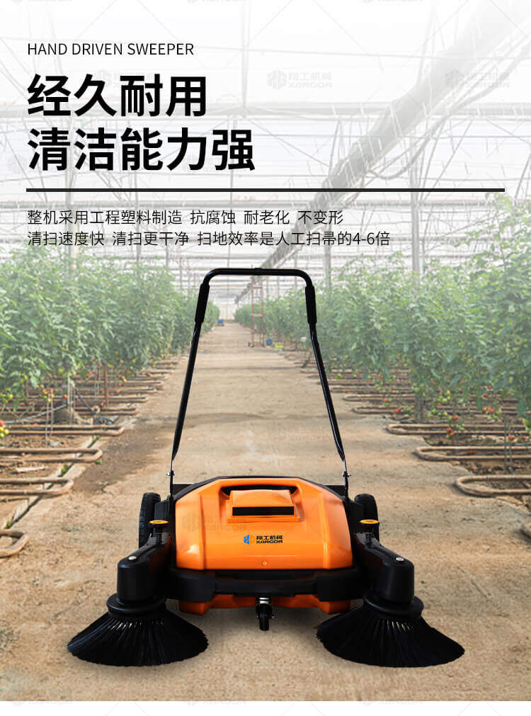 手推式掃地機能清潔房屋周邊范圍:包括小路,公路,車道和院子,能比用普通的掃把和簸箕節省5倍的時間,清掃時垃圾被迅速的收集到塵箱,簡單、快速、干凈。