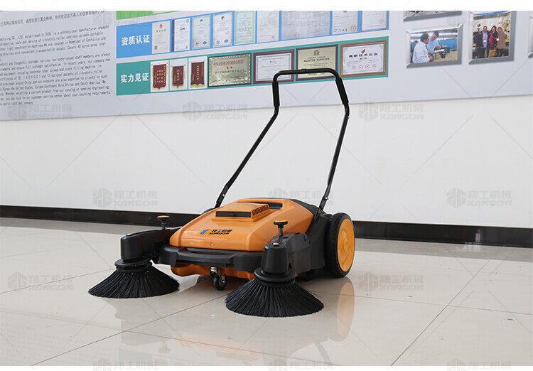 手推式掃地機設計精巧、技術獨特,工作方式采用無動力傳動,依靠機身雙輪的摩擦帶動毛刷運轉,只需推著步行便可將垃圾輕松回收到垃圾箱毛刷可根據地面以及垃圾情況,隨時進行高度調節,使之達到很低的無功損耗和很好的清掃效果。
