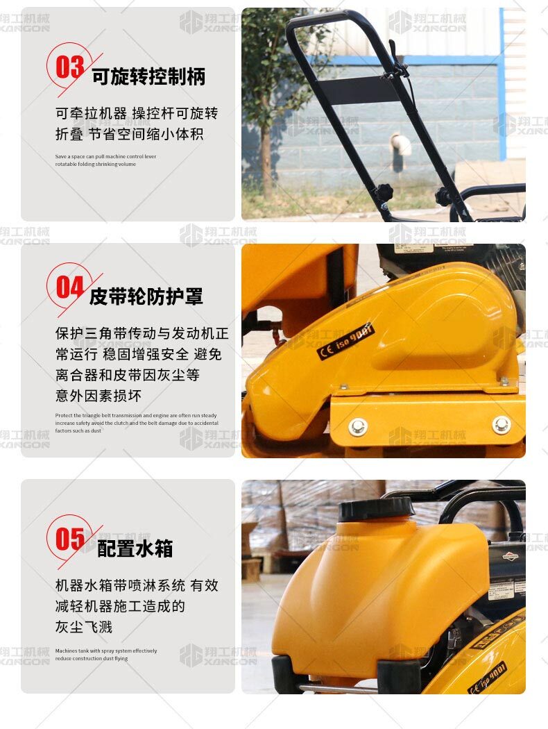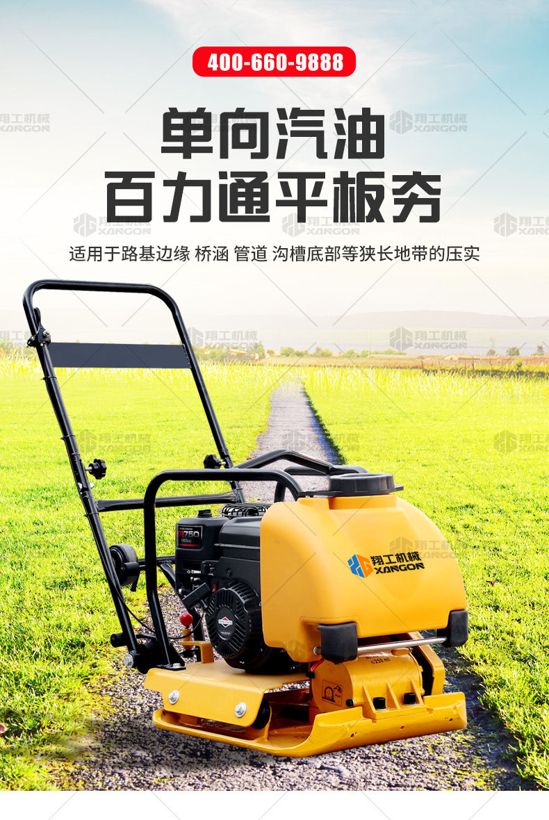 單向平板夯XPB-20適用于路基邊緣、橋涵、管道、溝槽底部等狹長地帶的壓實。 HONDA動力,性能優越,啟動容易 采用單獨懸掛式強力減震機構,減少對發動機的沖擊,提高操作人員的舒服感;