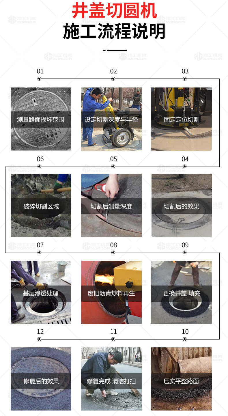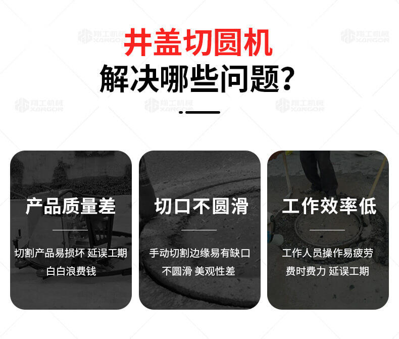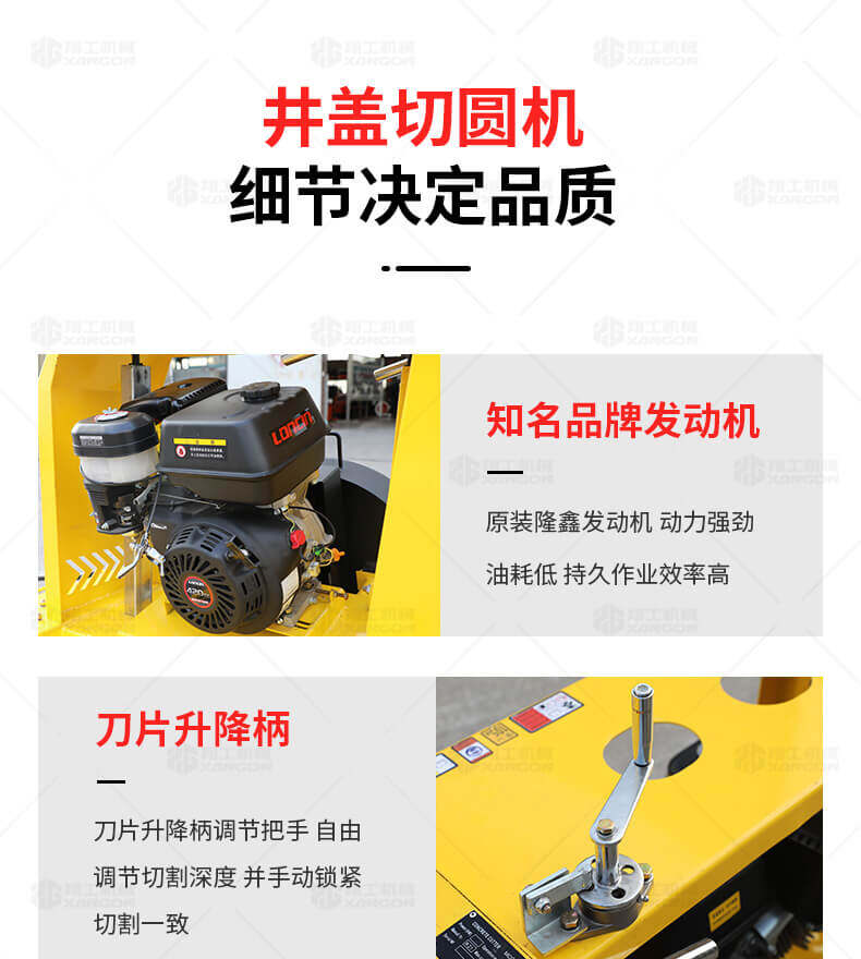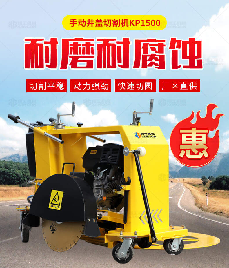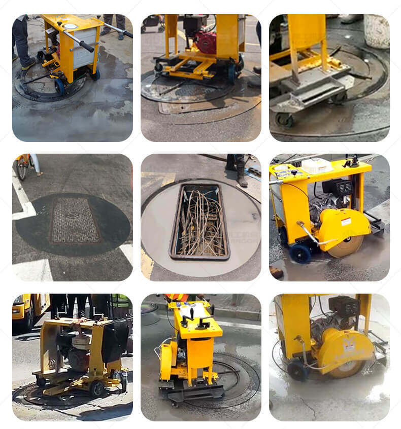 XG-1500型井蓋切割機,專門用于對城市道路中機動車道等井蓋周圍的水泥混凝土或瀝青路面進行圓形切割。為清楚井蓋周圍的破損路面提供分割區域,恢復后的地面美觀,延長了路面的使用壽命。