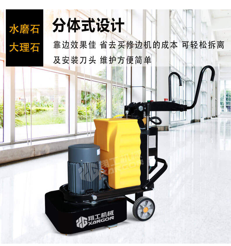 地坪研磨拋光機廣泛應用于混凝土地面,石材地面的研磨,拋光,能達到舊地面翻新,新地面無塵的效果。靠邊效果佳,可以省去買修邊機的成本。部分機型采用鋁合金齒輪箱,達到合適重量。機器平價且性能穩定。