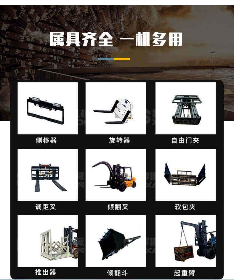 5.越野叉車發動機功率大,采用全輪驅動和越野輪胎。