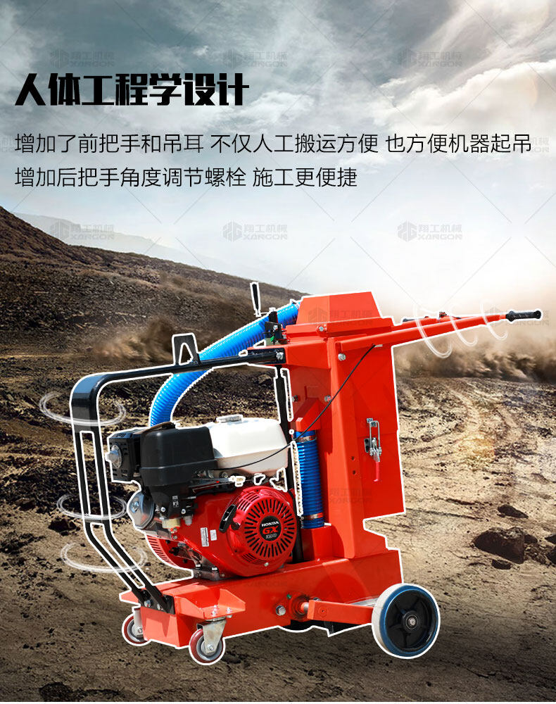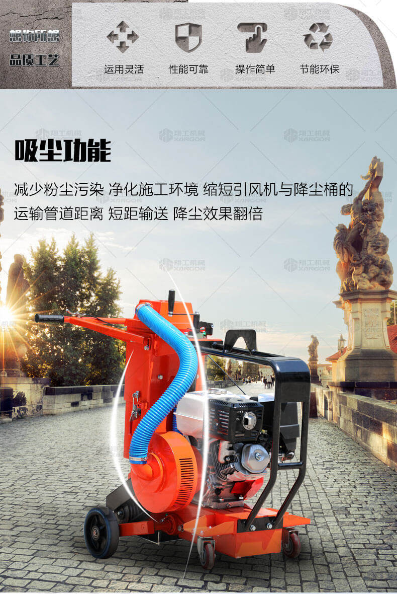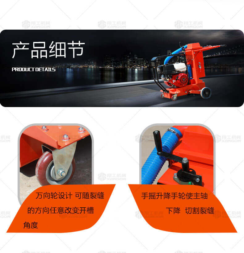 用于對主要用于瀝青、水泥路面裂縫病害處置時的開槽拓寬和清理雜物,為道路灌縫做前期準備,優化灌縫材料與縫槽的接觸層面,加強灌縫材料與縫槽側壁粘結的緊密性。產品具有轉向靈活、操作方便、工作效率高、跟蹤效果好等特點。