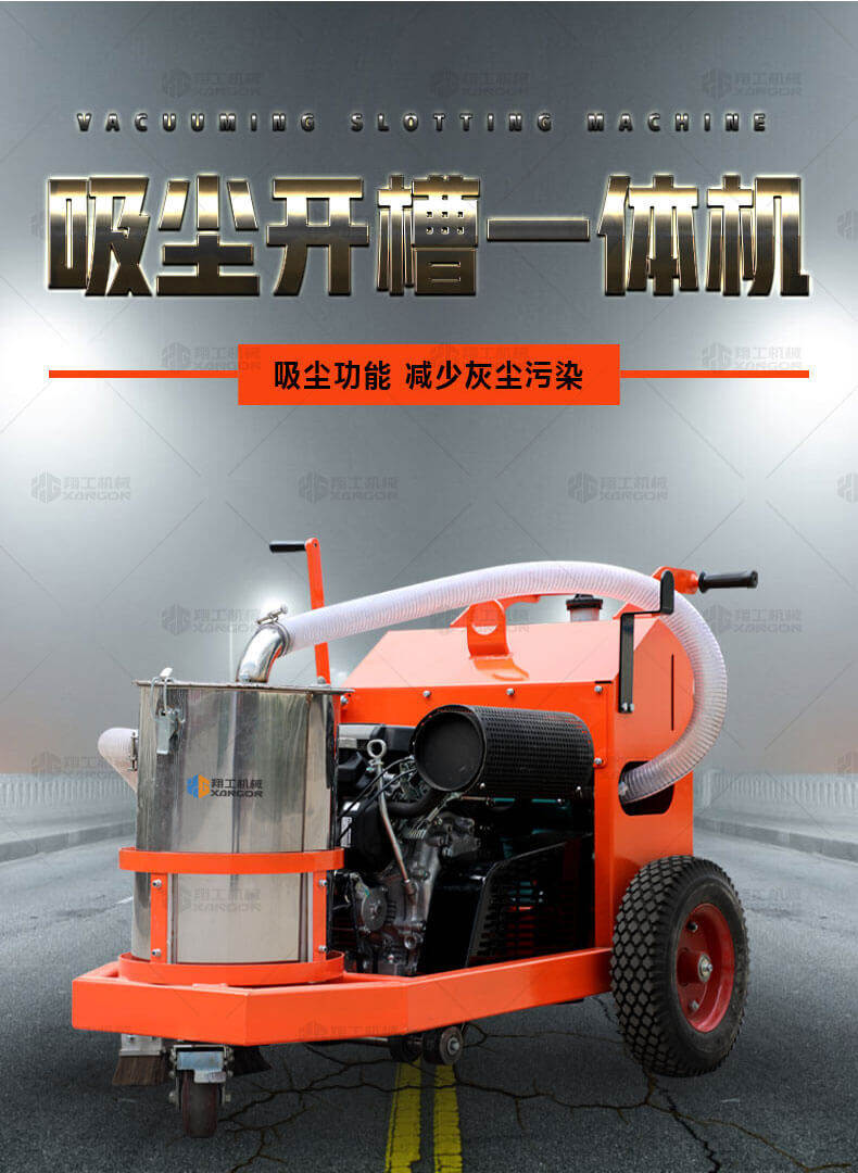 自吸塵式路面開槽機帶有吸塵功能,解決了傳統開槽機工作產生灰塵的問題,更加環保。我們這款路面開槽機是專門用于混凝土路面開槽的,性能優越,節能環保。