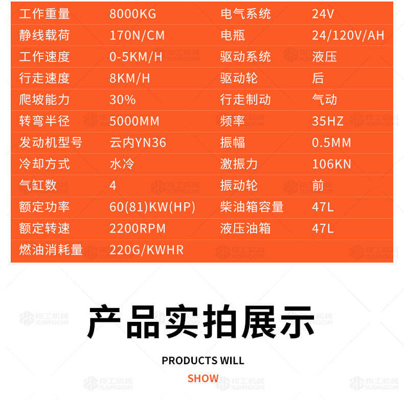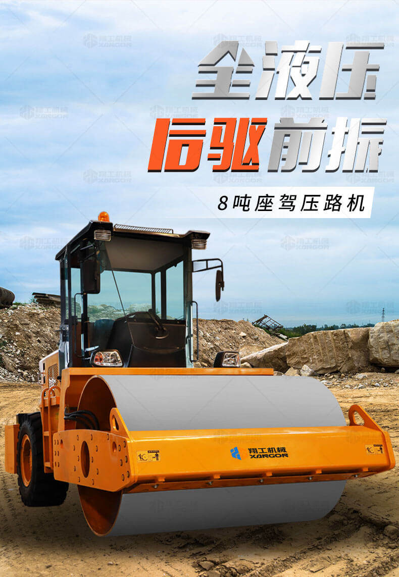 8噸壓路機主要應用市政道路、公路維護,具有強大的激震力及很高的靜線壓力,適宜于碾壓非粘性材料如礫石、礫土、碎石、砂石混合料和巖石填方以及粘土等。