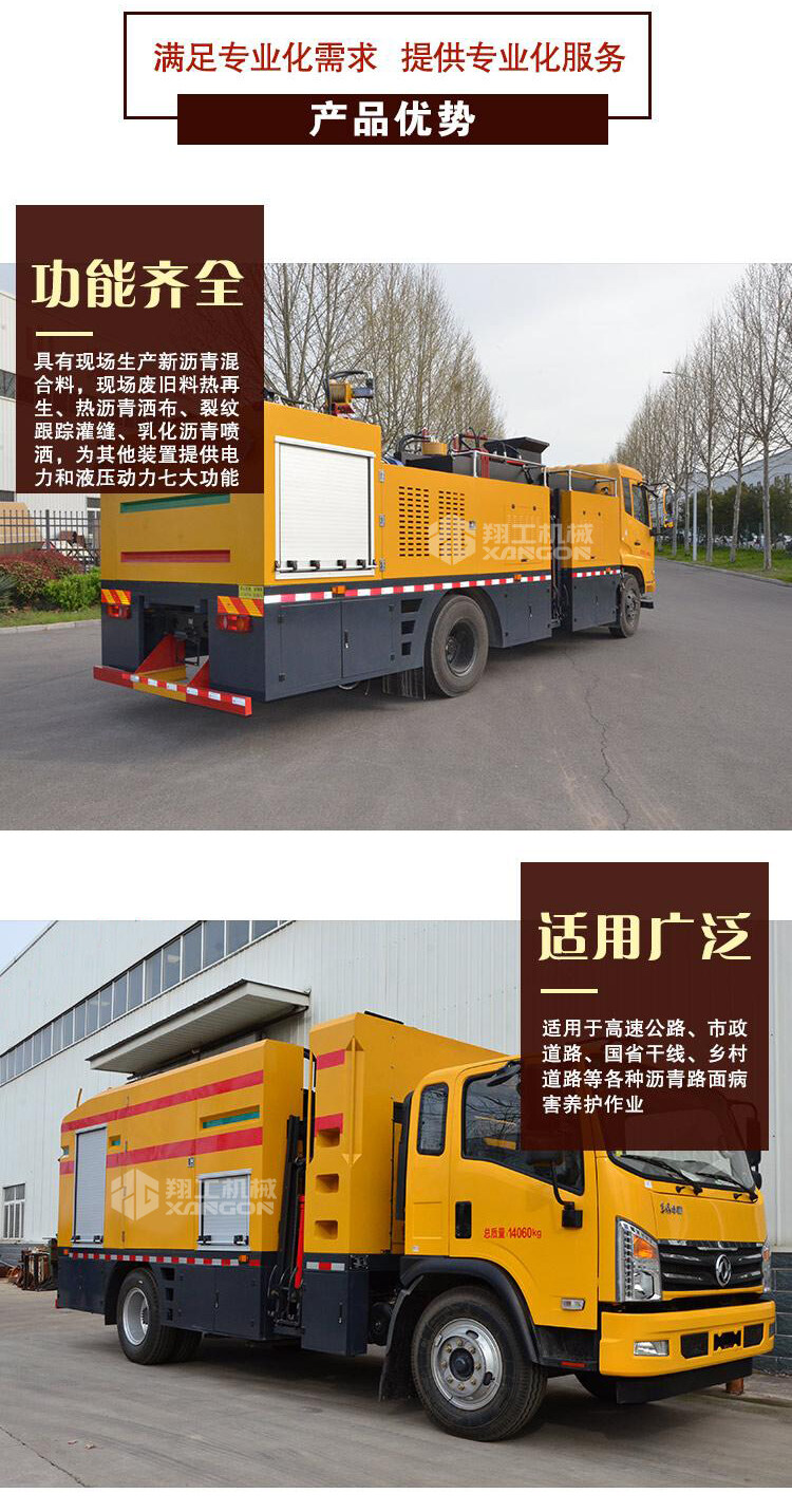 道路養護車,是針對瀝青路面在使用過程中,產生的諸多坑槽、裂縫、臃包、沉陷、網裂等多種病害的處理而設計的道路養護車。