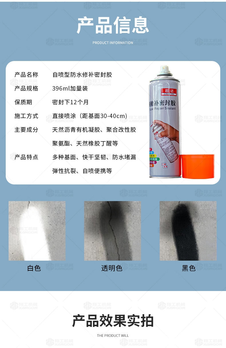 超強修補密封膠是專為防水施工中管根、管口、拐角和裂縫等處防水修復、薄弱易漏點而開發。直接噴涂、噴涂后形成強效橡膠密封保護膜,有效附著于各類表面與材質,直接解決最麻煩的漏水問題。
