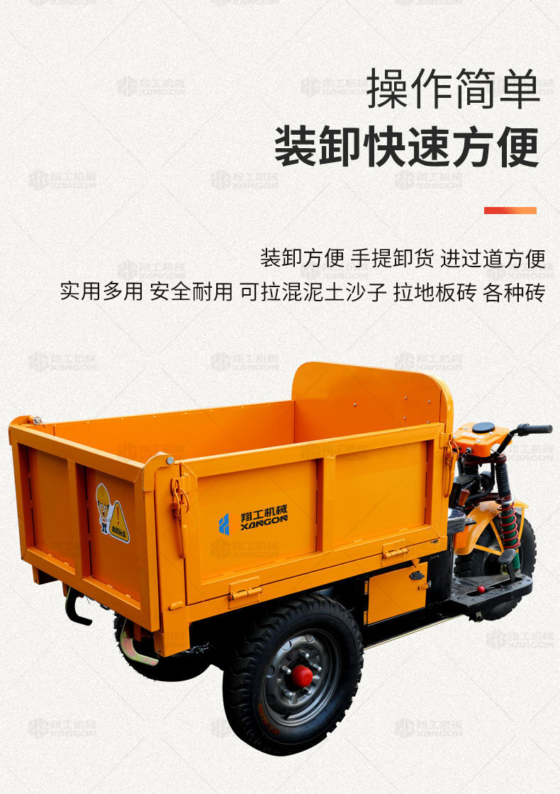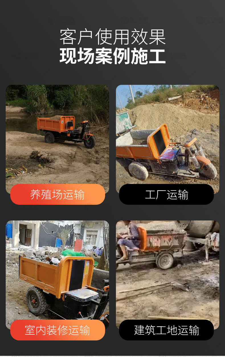 此款車適用于建筑工地、室內裝修、養殖場、工廠等場所,運輸沙子、水泥、土方、混凝土、建筑垃圾生活垃圾、養殖場動物糞便、飼料等,體積小操作簡單靈活,可原地360度轉圈,可進入樓層、樓道、電梯、吊籃等各種狹小空間作業,是您必不可少的裝卸助手。
