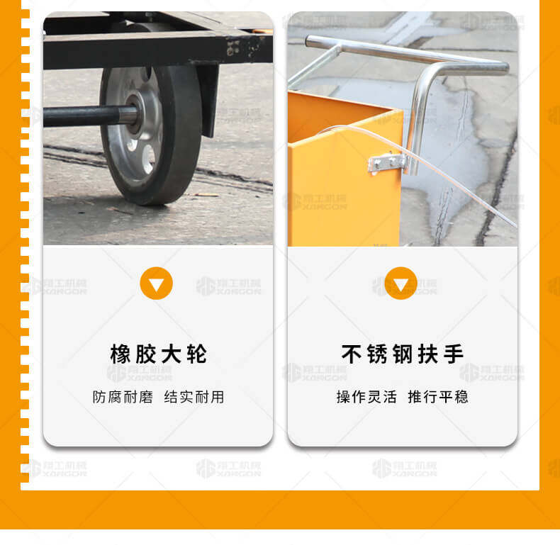 水線車是標線施工前序工作中施劃水線放樣的專用設備。 水線是標線施工前必不可少的工序,水線機可以替代大部分的手工放樣,降低勞動強度,提高工作效率,省時省力。 本產品可同時劃三條基準線(水線),可靈活調整水線間距;水線架和伸縮桿可折疊、拆卸,便宜運輸。 在施工前,在所要施劃標線的位置上需先涂劃水線,用以引導標線劃線機的施劃。