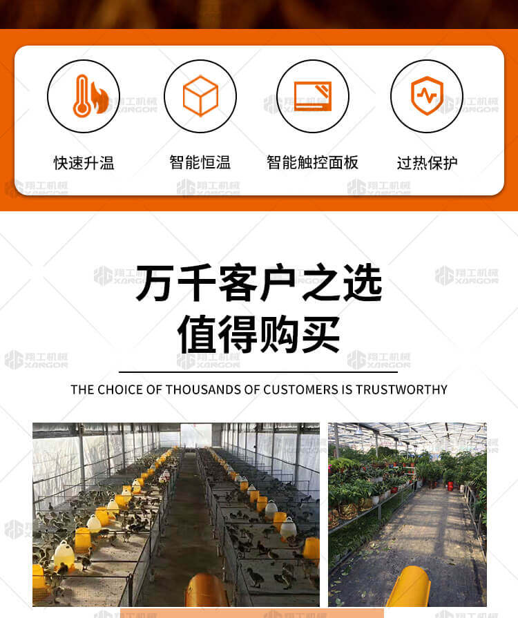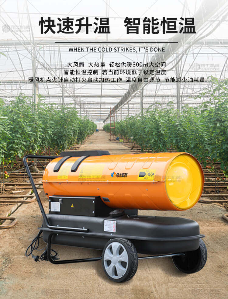 燃油暖風機可對禽畜取暖,育雛取暖,花卉養殖,大棚蔬菜瓜 果,商場,車間,展會進行取暖。