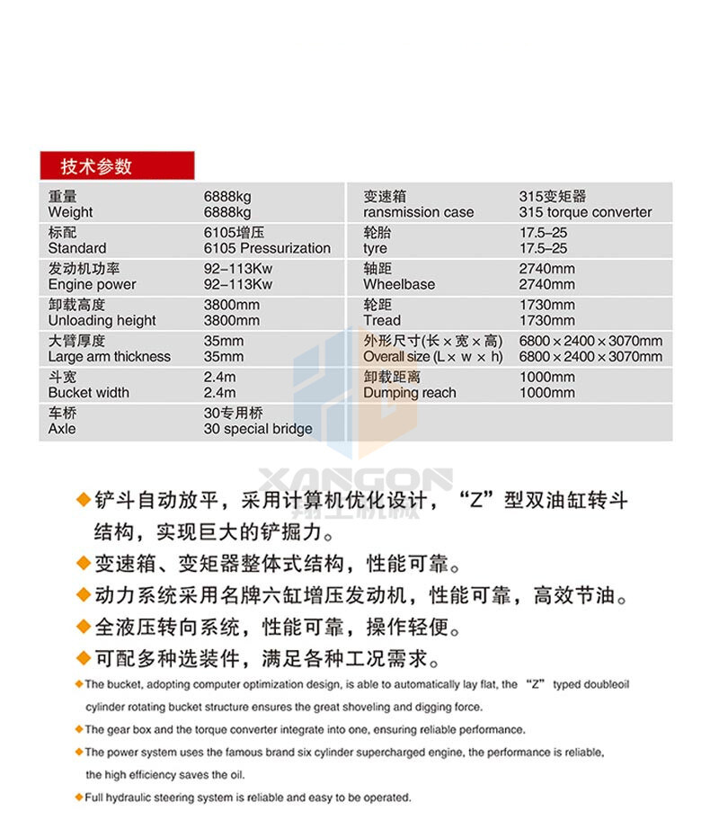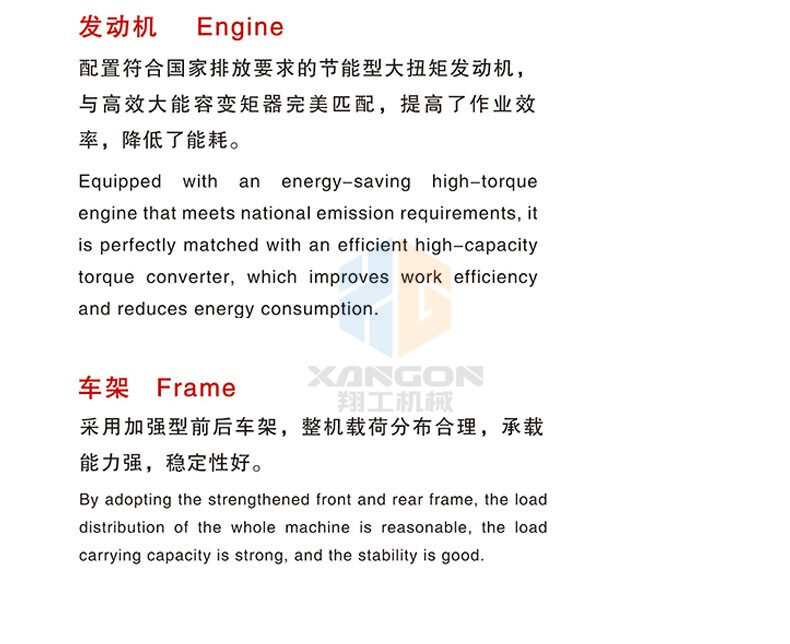 主要用于鏟裝土壤、砂石、石灰、煤炭等散狀物料,也可對礦石、硬土等作輕度鏟挖作業。換裝不同的輔助工作裝置還可進行推土、起重和其他物料如木材的裝卸作業。在道路、特別是在高等級公路施工中,裝載機用于路基工程的填挖、瀝青混合料和水泥混凝土料場的集料與裝料等作業。