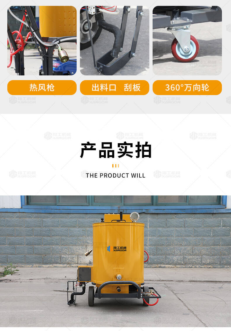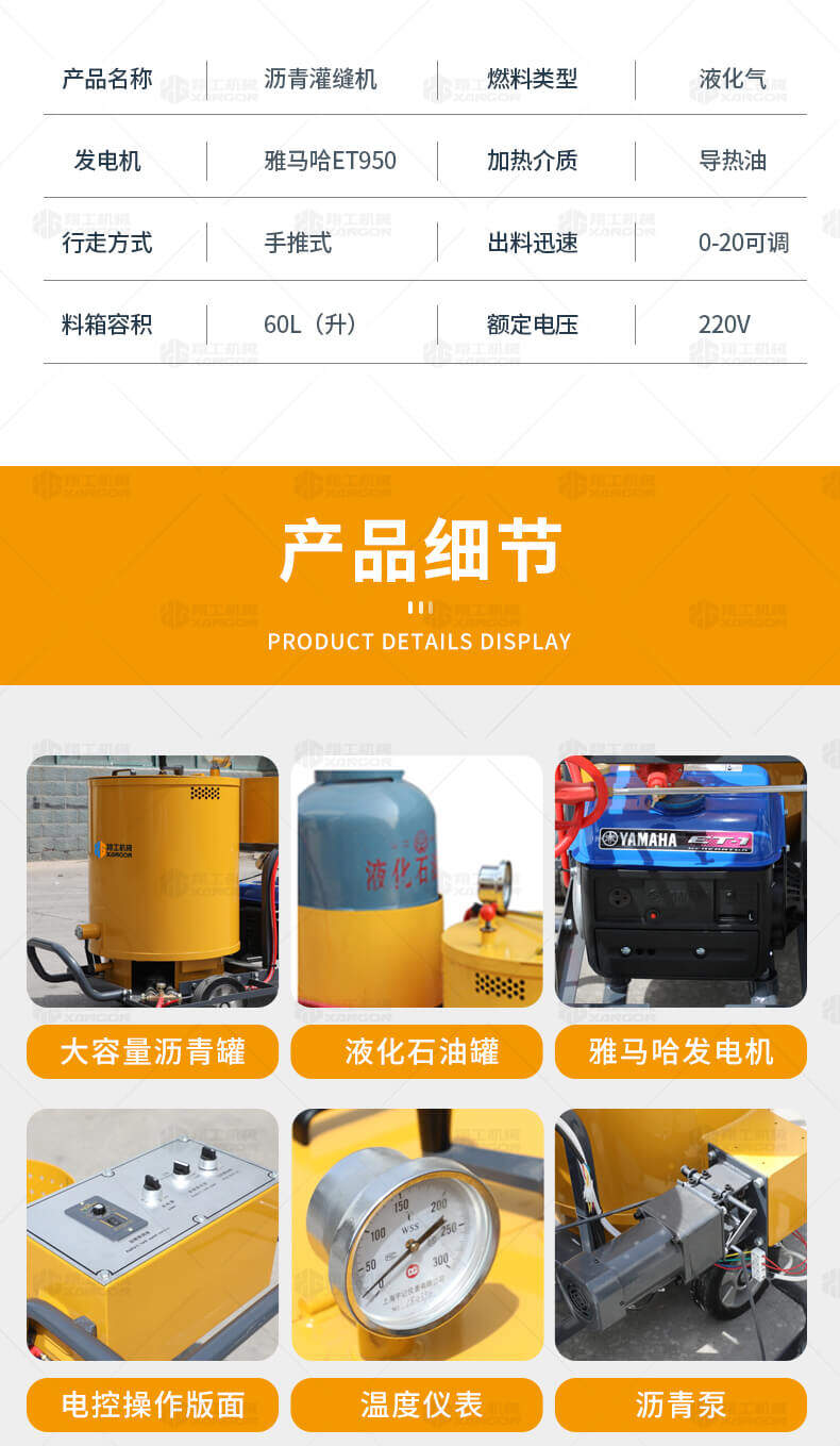 60升瀝青灌縫機用于瀝青或水泥路面裂縫瀝青灌縫。 60升瀝青灌縫機采用名優(yōu)發(fā)電機,性能穩(wěn)定;液化氣加熱,方便靈活;超大瀝青罐;出料管路全程加熱,避免堵塞。