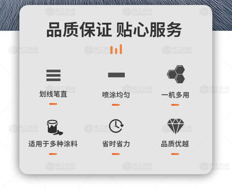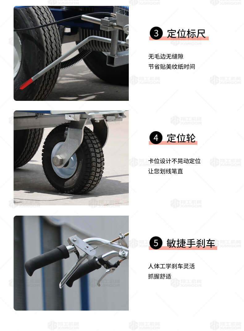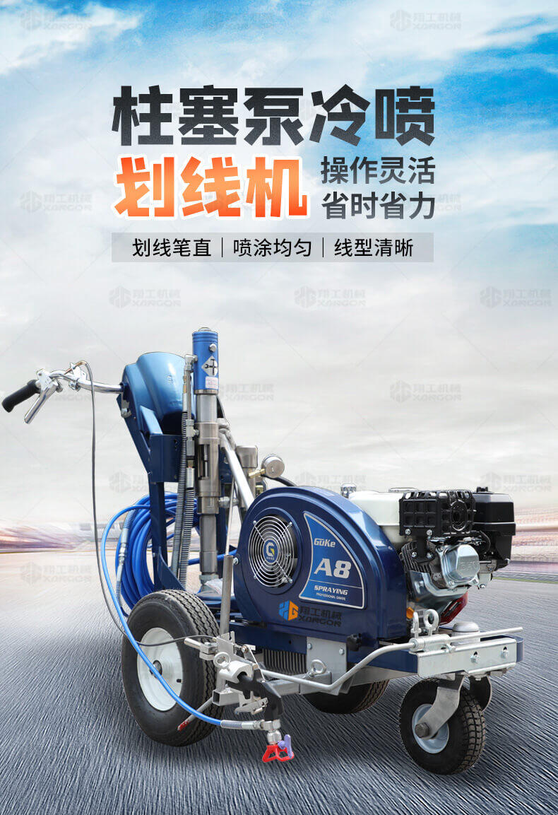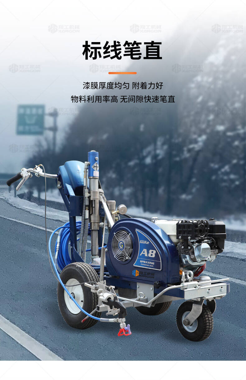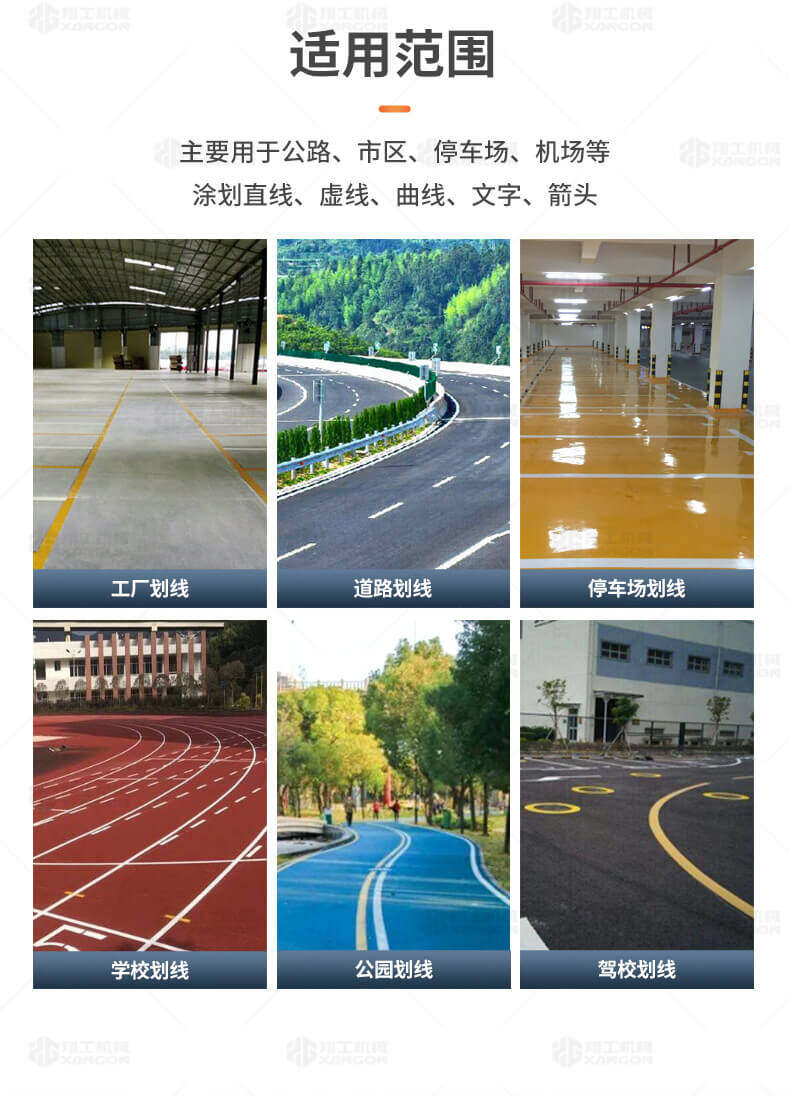 主要用于公路、市區、停車場、機場等涂劃直線、虛線、曲線、文字、箭頭等。具有劃線效果好、速度快、效率高、適用范圍廣、使用方便等優點。