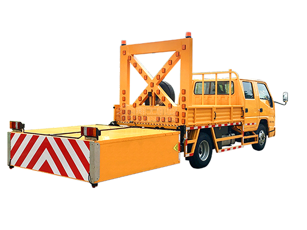 應用于道路養護施工作業、清掃保潔、灑水、綠化修剪、路面事故巡查等工況的安全防護。置于道路車輛、設備后方,在發生追尾事故中充當肇事車輛和施工作業人員或設備的緩沖區域,降低對人員的傷害。
