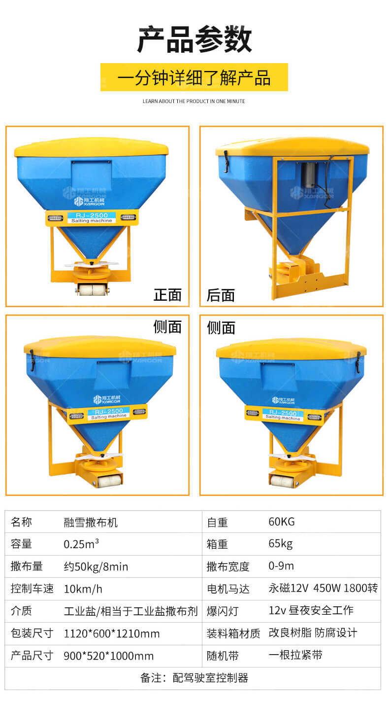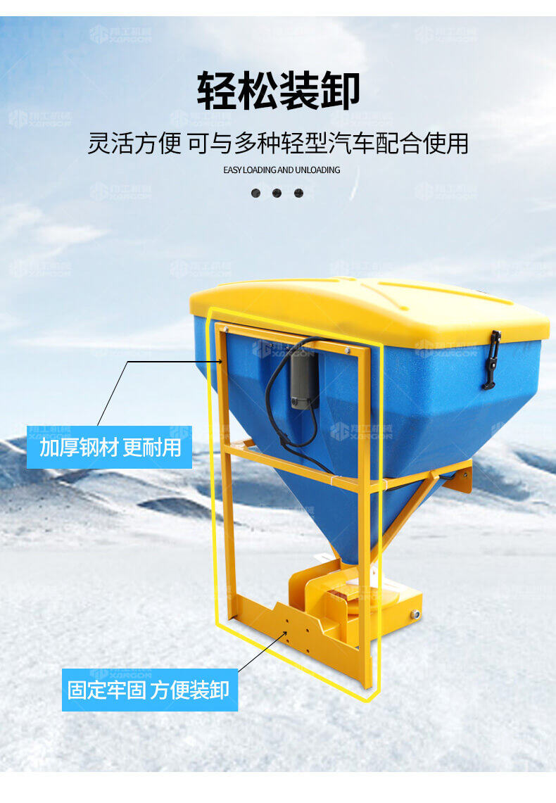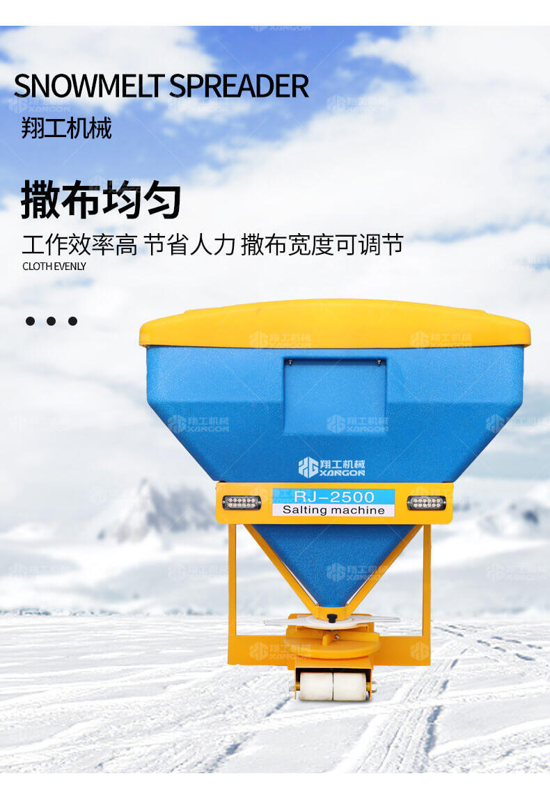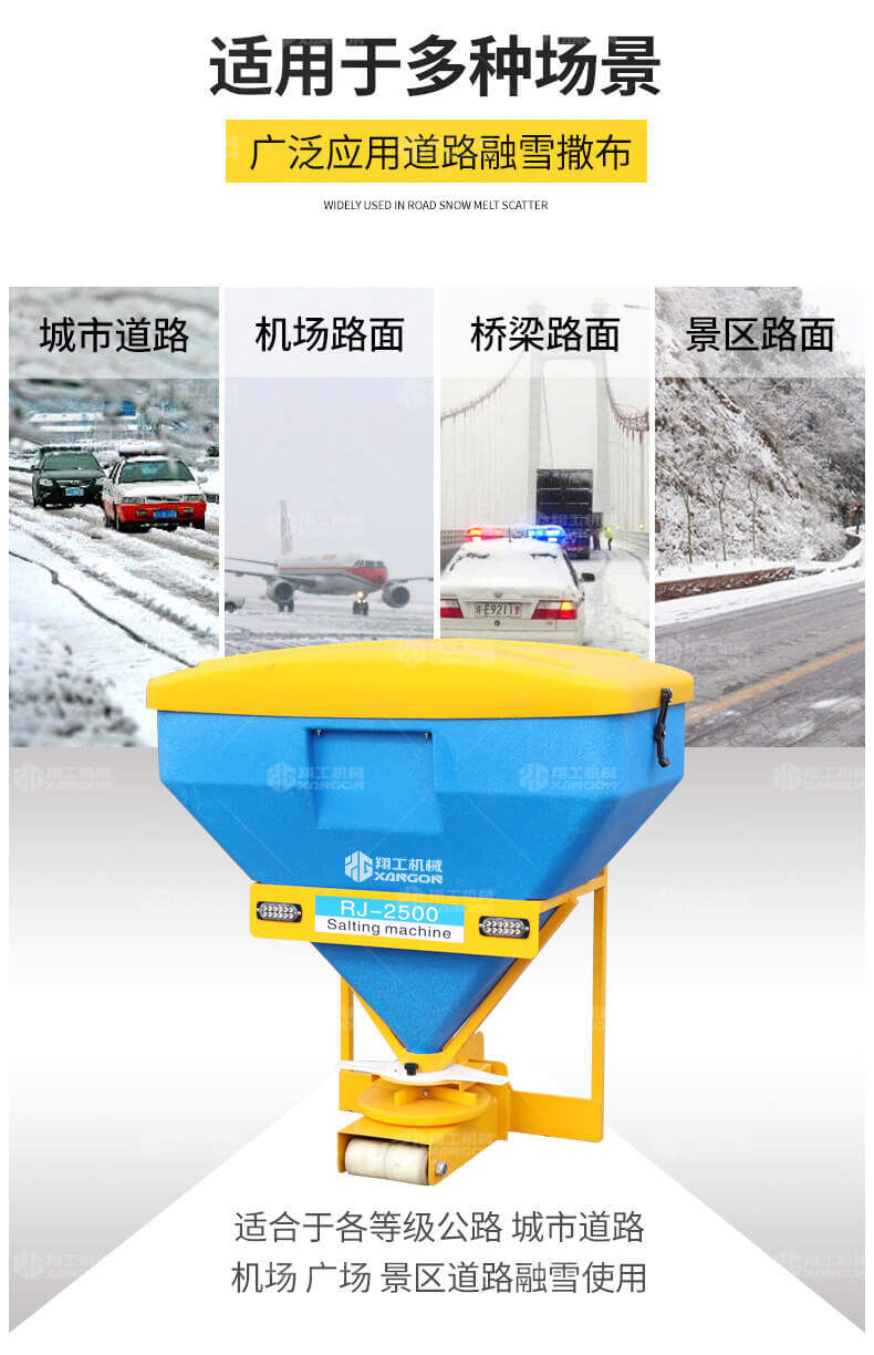 本產品用于道路、小區、廣場等地面積雪的融雪布撒,用以加速地面積雪融化,消除雪停自然融雪又結冰的風險。