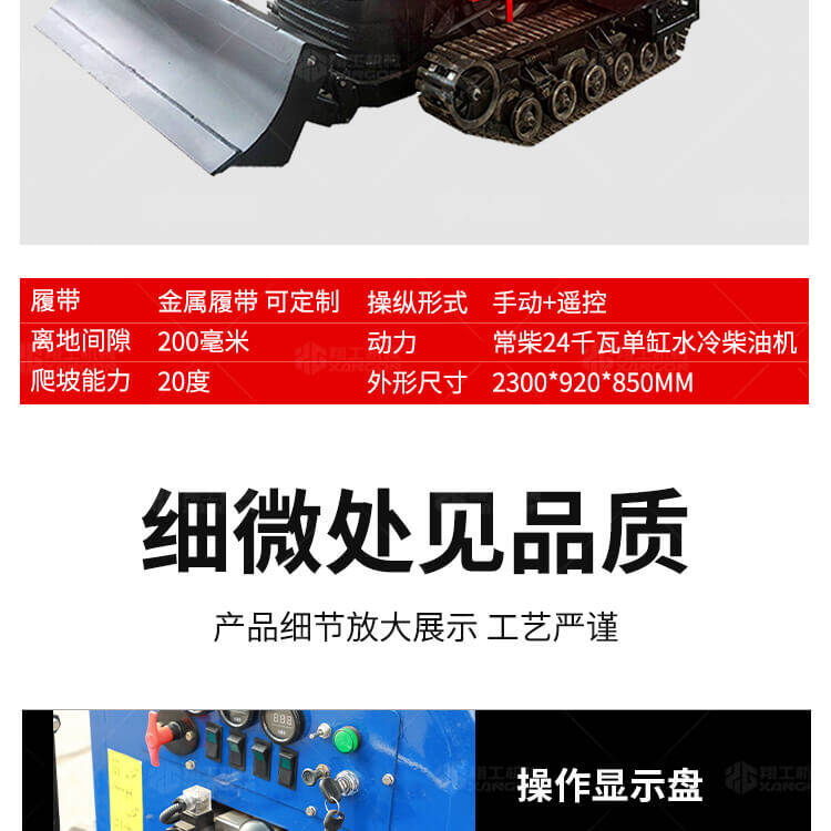 402和502輕型履帶田園管理機是在機械操縱的基礎上,采用先進的電子集成控制系統和液壓系統相結合,改進設計為機械、遙控兩套操縱系統。