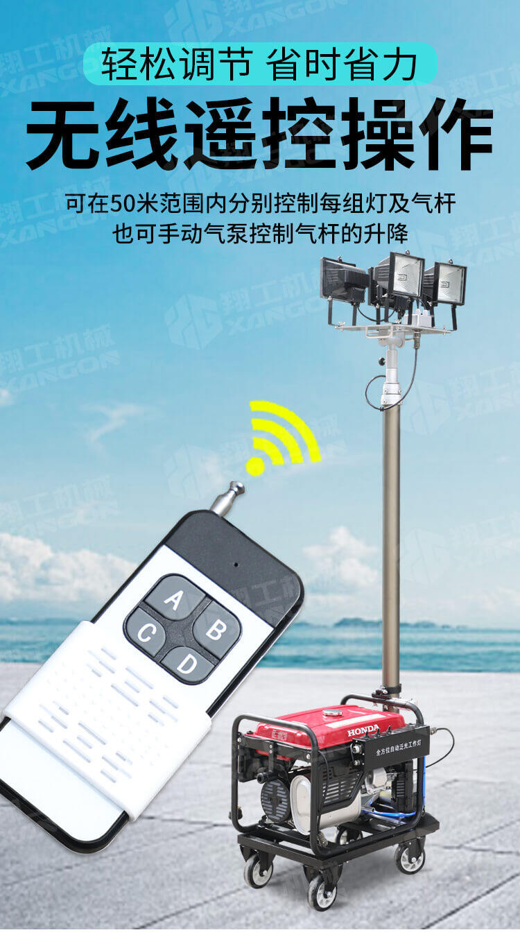 全方位升降工作燈適用于鐵路、電力、公安、消防、石油、石化等各種大型施工作業、事故搶修、搶險救災等工作現場對大面積高亮度照明的需要。