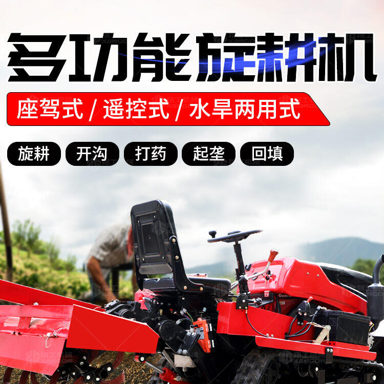 多功能旋耕林座駕式/遙控式/水旱兩用式,開溝/旋耕/打藥/起壟/回填