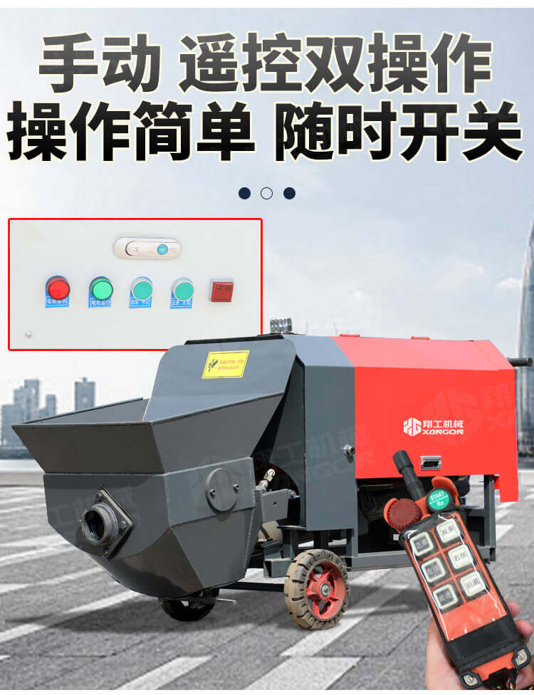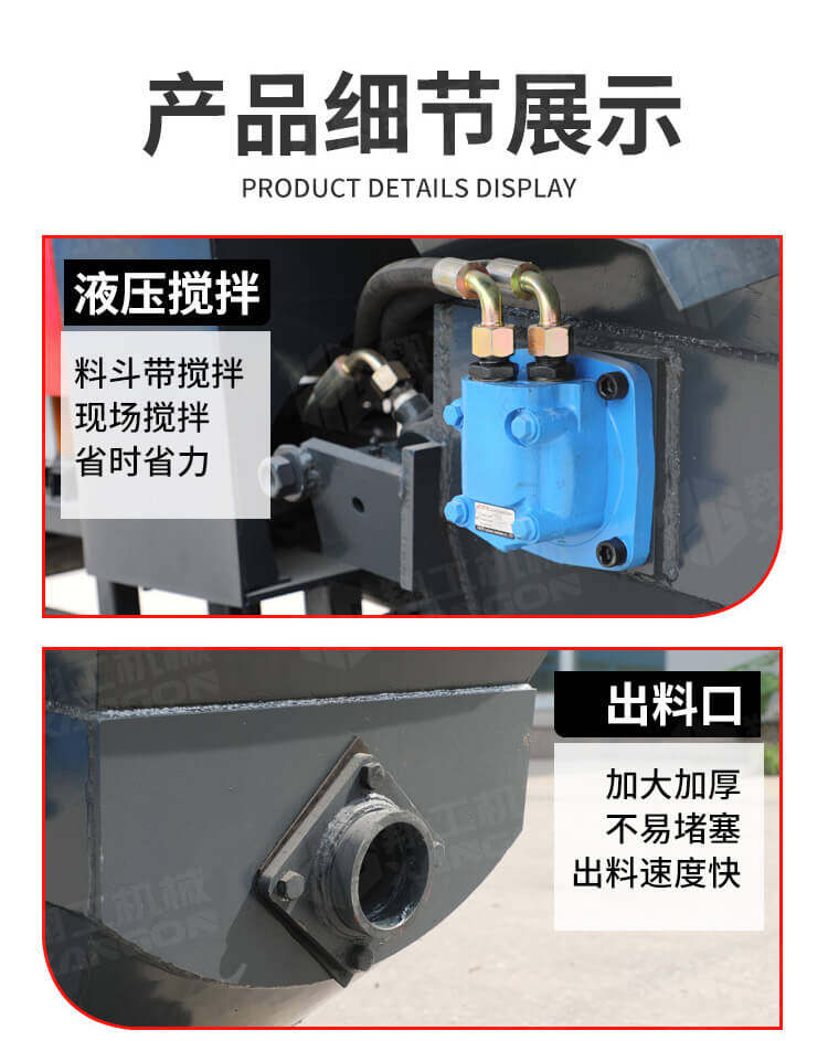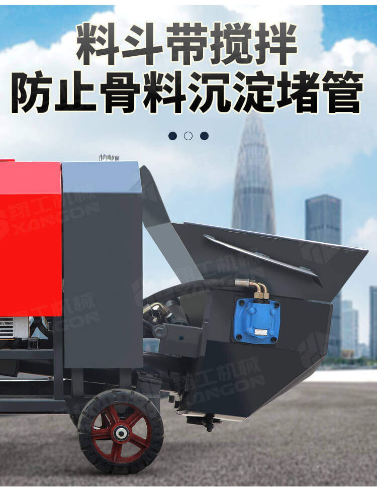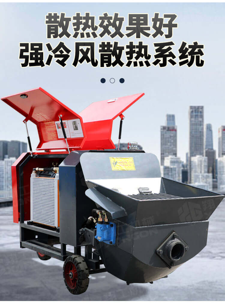 本產品為手推式行走臥式造型輸送泵,料斗帶攪拌功能,可泵送機制砂;風冷散熱,散熱效果好;集成芯片控制箱,多條備用線路獨立設計,不用擔心控制系統問題;操作部件采用24v 安全感應電壓,安全可靠;S 彎采用兩個單向油缸,速度均勻。