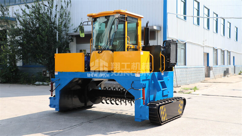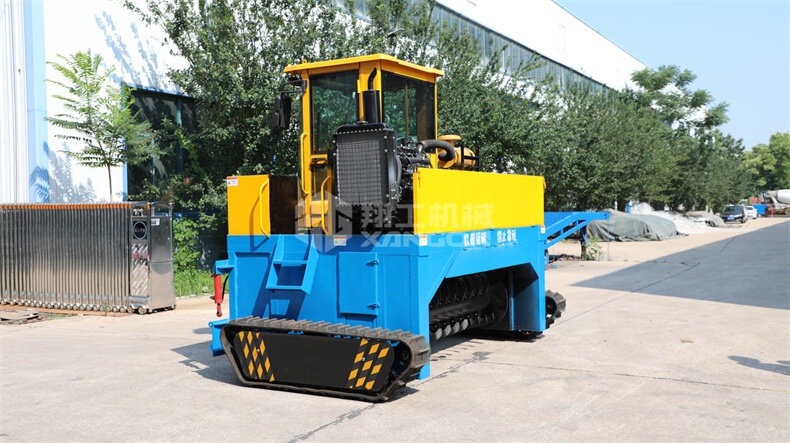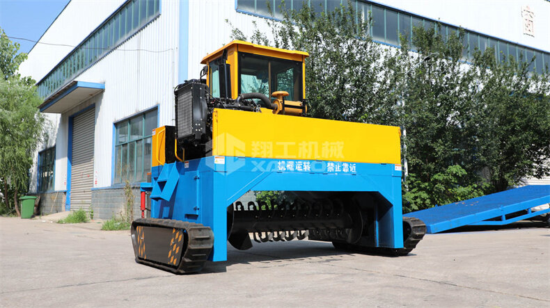 該機(jī)器配備了兩條履帶,從而做到了發(fā)酵過(guò)程中運(yùn)轉(zhuǎn)自如,達(dá)到縮短時(shí)間的作用。