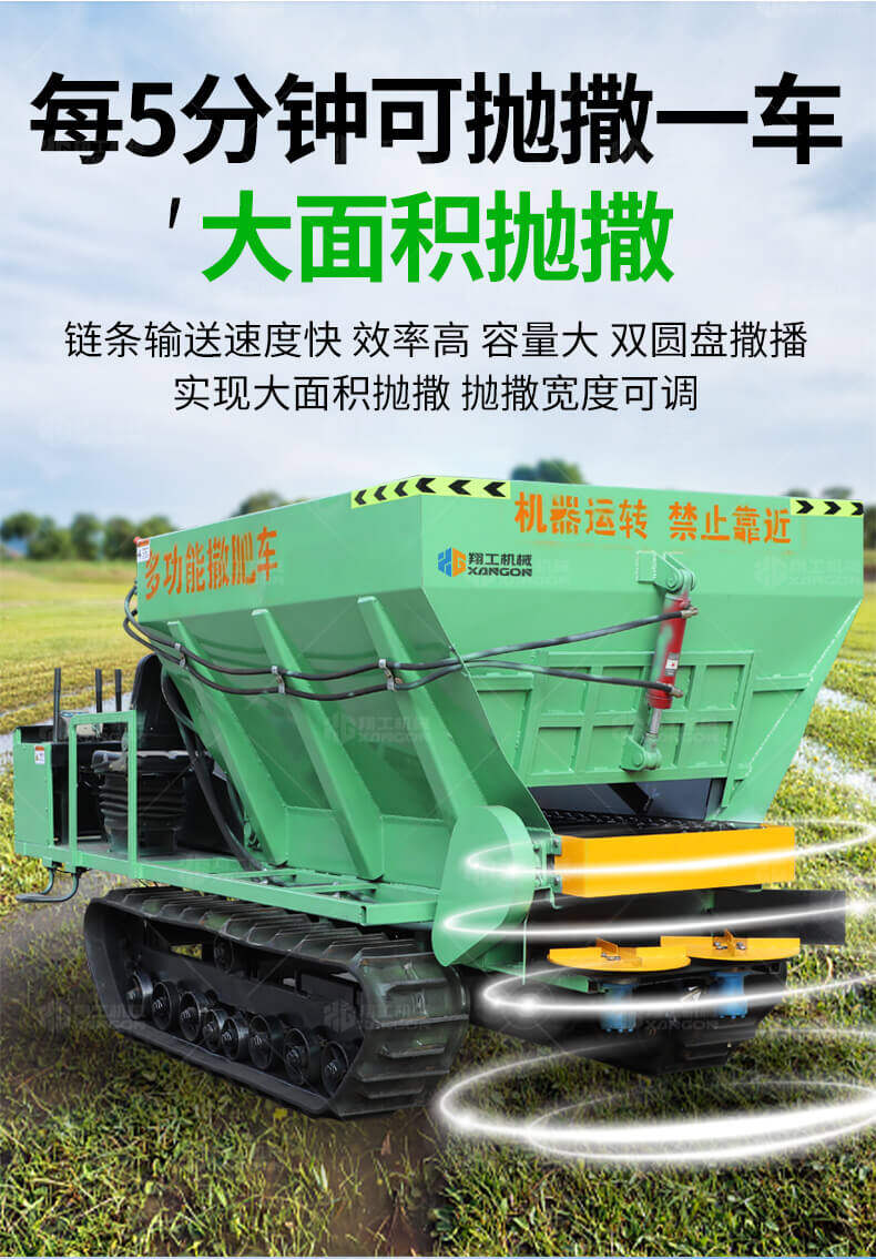 履帶式撒糞車是一款根據果園、大棚丘陵地帶量身定制的一款撒糞車,轉彎半徑小既可揚撒各類農家肥,也可直接鋪肥。