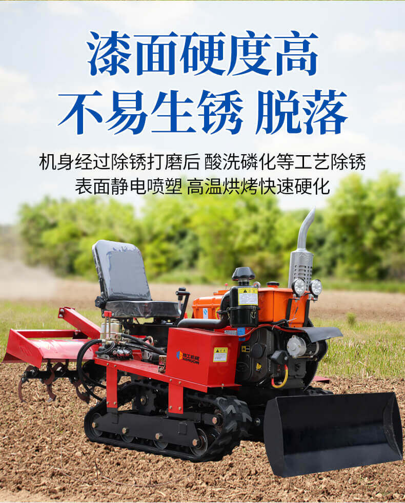 25馬力旱地履帶旋耕機(jī)適用于大面積、小面積清除雜草,適用于果園、農(nóng)田、玉米地、山地的除草作業(yè),打藥/旋耕/犁地/開溝施肥/回填/除草/起壟都可以。