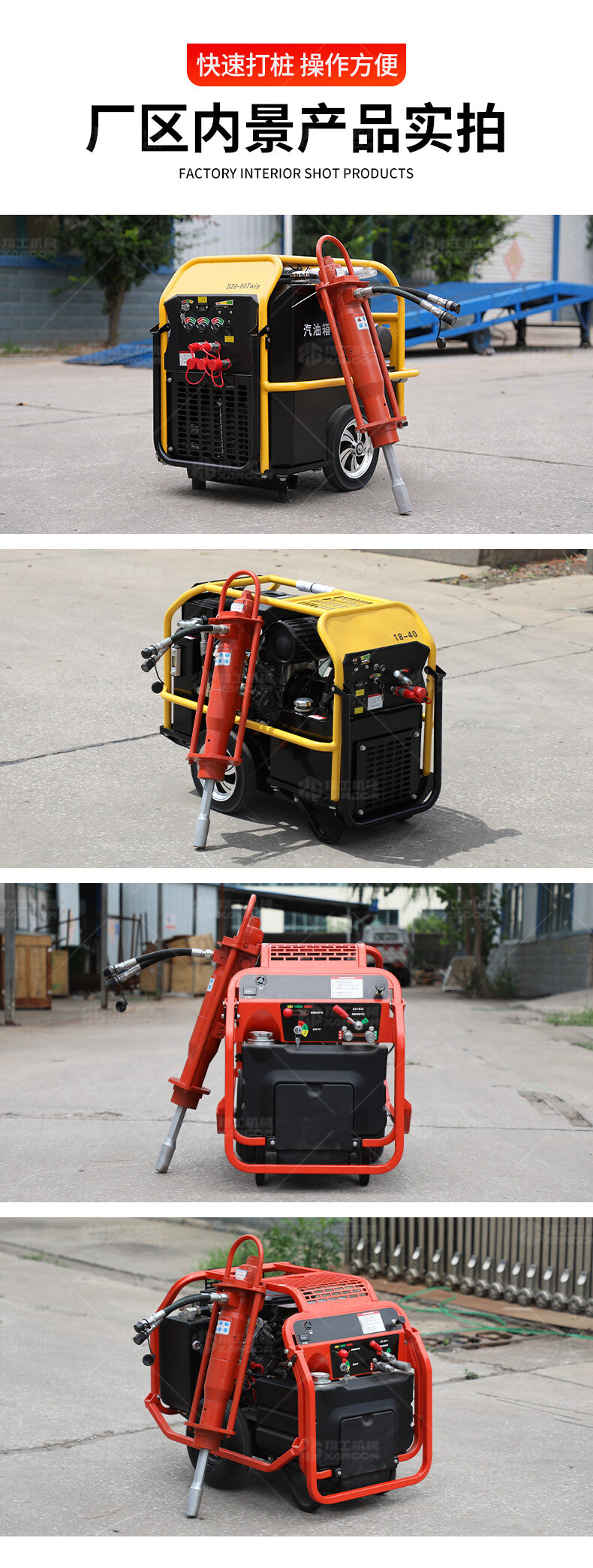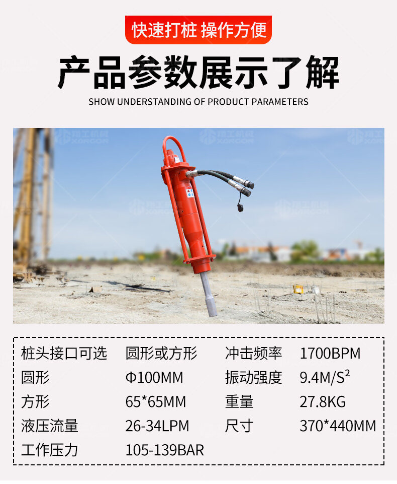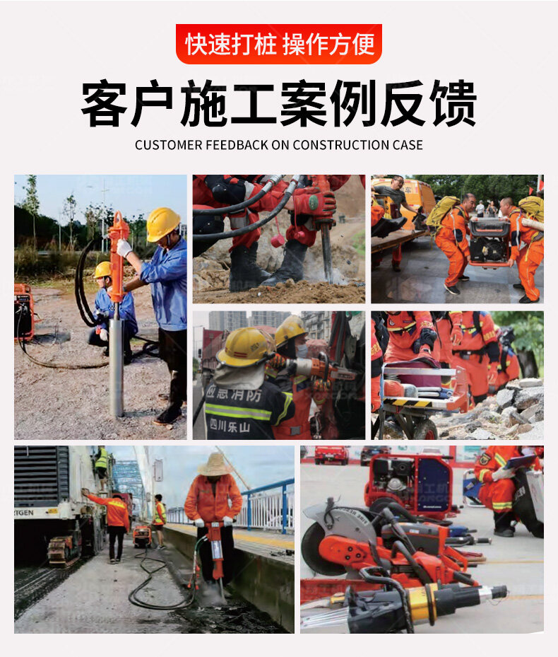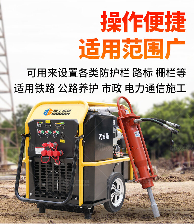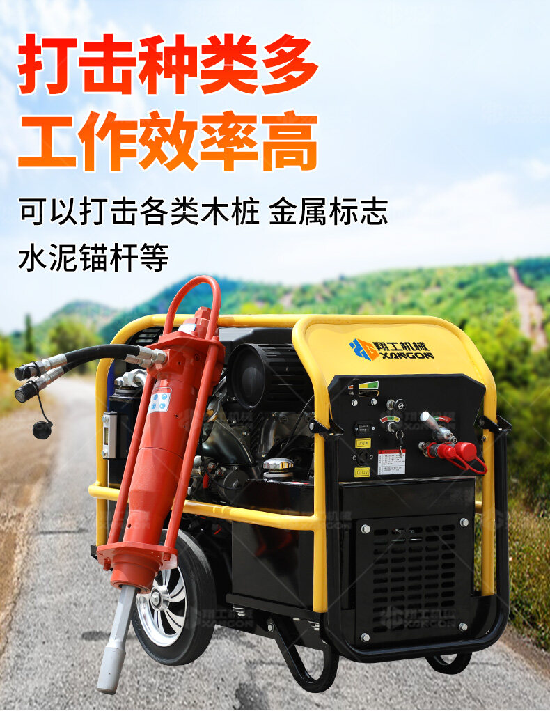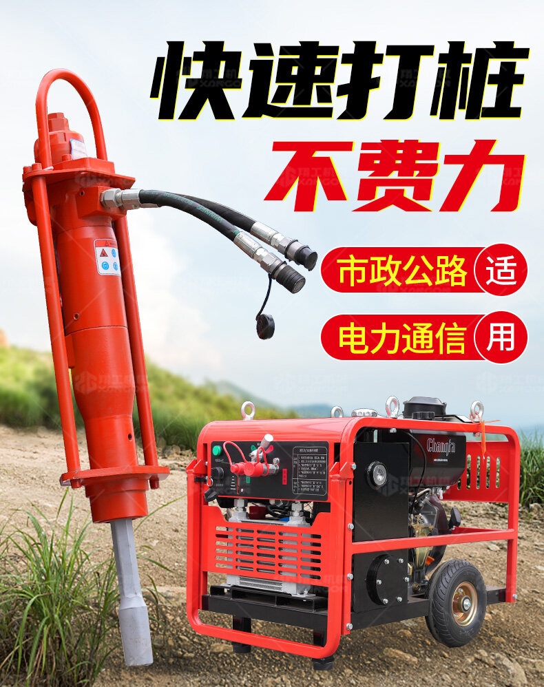 手持液壓打樁機+液壓動力站——高效靈活的打樁解決方案。采用液壓驅動,沖擊力強、振動小,適用于建筑地基、圍欄安裝、園林工程等場景。搭配液壓動力站,動力強勁,操作便捷,可長時間連續作業。體積小、重量輕,適合狹小空間施工,是工程打樁的理想工具。