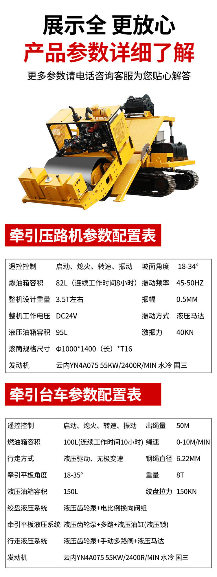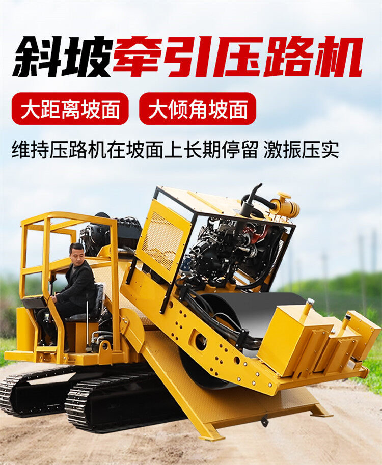 帶絞車斜坡壓路機是由壓路機和牽引絞車共同組成的協同工作的壓路機,使用于大距離,大傾角的坡面工作。