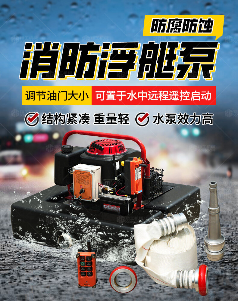 浮艇泵是一種便攜式水上抽水設備,專為消防、排澇設計。采用漂浮結構,可快速部署于河流、池塘等水源,抽水流量大(30-200m3/h),壓力穩定,適應復雜環境。輕便靈活,操作簡單,適用于消防滅火、抗旱灌溉及應急排水,是野外作業和災害救援的高效裝備。